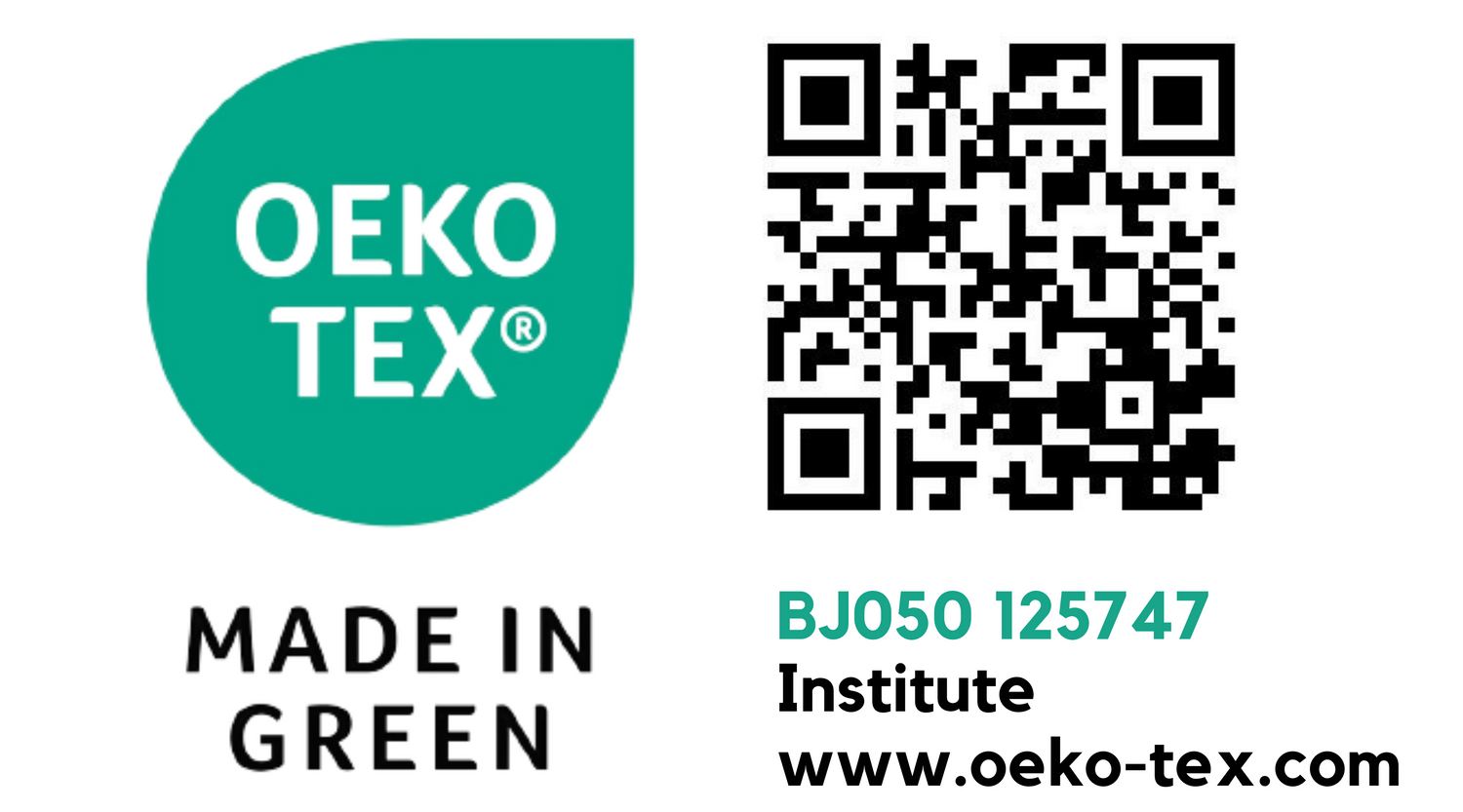 Our products carry the Oeko Tex Made in Green and the Oeko Tex 100 logos. The Made in Green label ensures that the product was produced in an environmentally friendly way. It also represents product and consumer safety. Companies that want to pass the Oeko Tex tests also commit to social responsibility. For more information you can scan the QR Code or check the Oeko-Tex website.