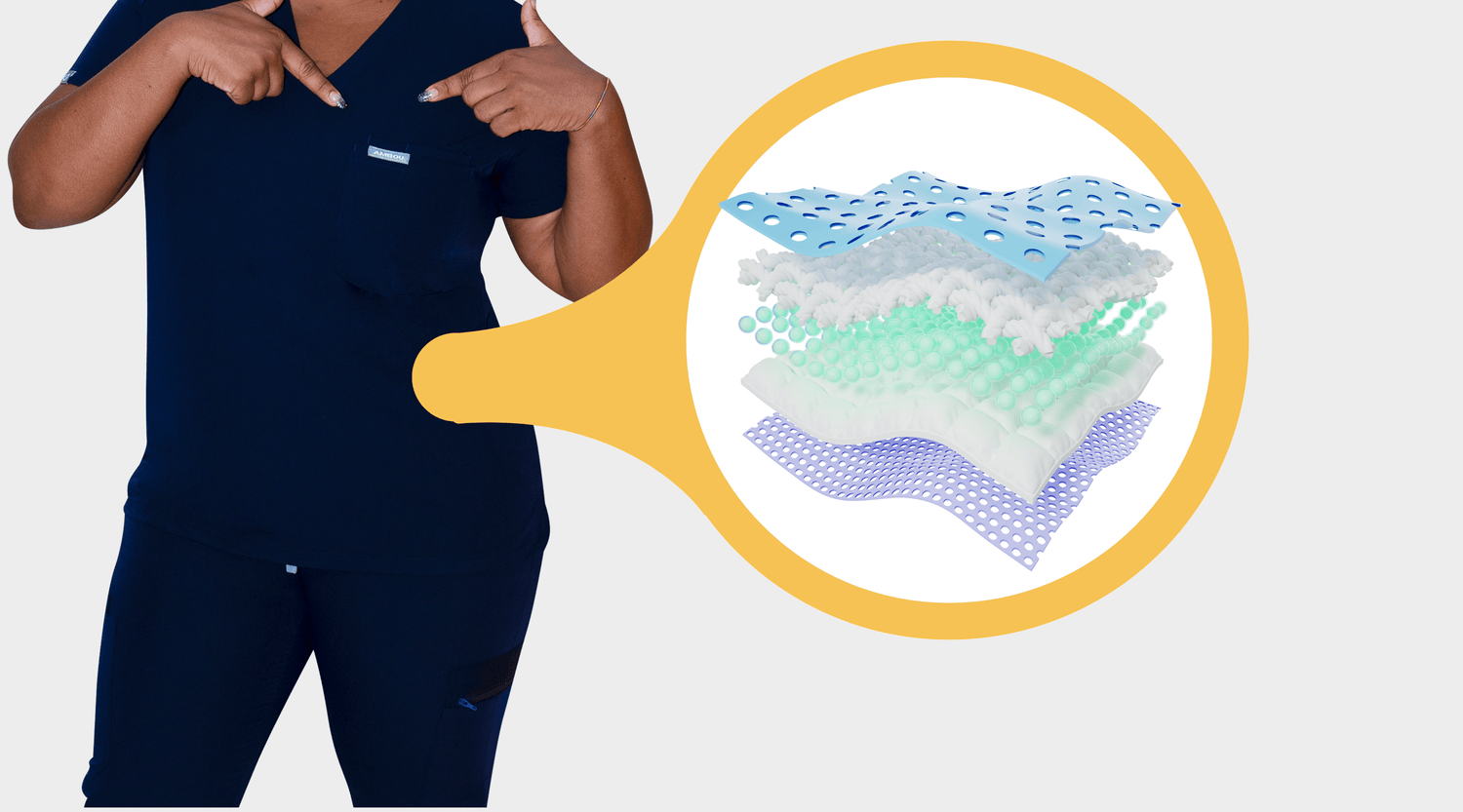 Stay fresh all day. Thanks to our innovative material composition, you'll remain cool and comfortable throughout the day, even during the most demanding shifts. Feel the airy comfort. Comfortably supportive.